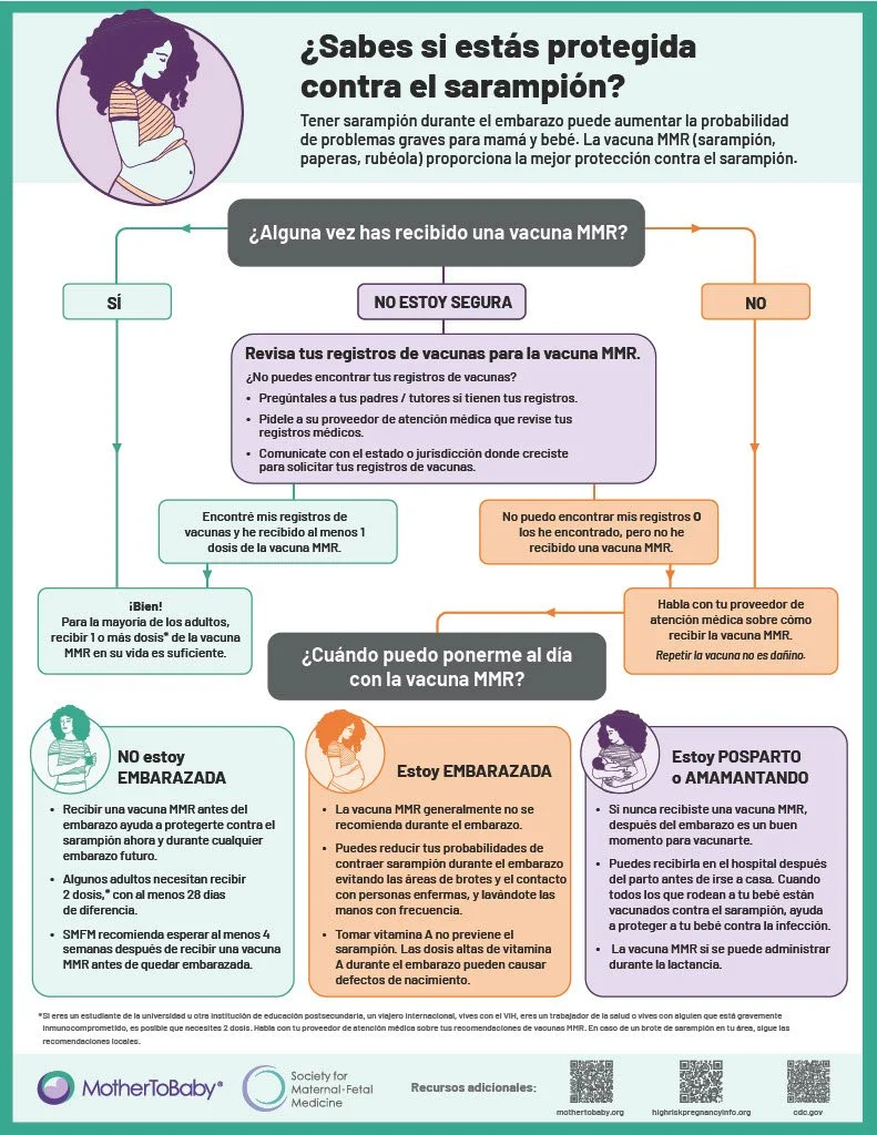 Contraer sarampión durante el embarazo puede causar graves riesgos para la salud, tanto para usted como para su bebé. La vacuna MMR (sarampión, paperas y rubéola) es la mejor manera de protegerse.